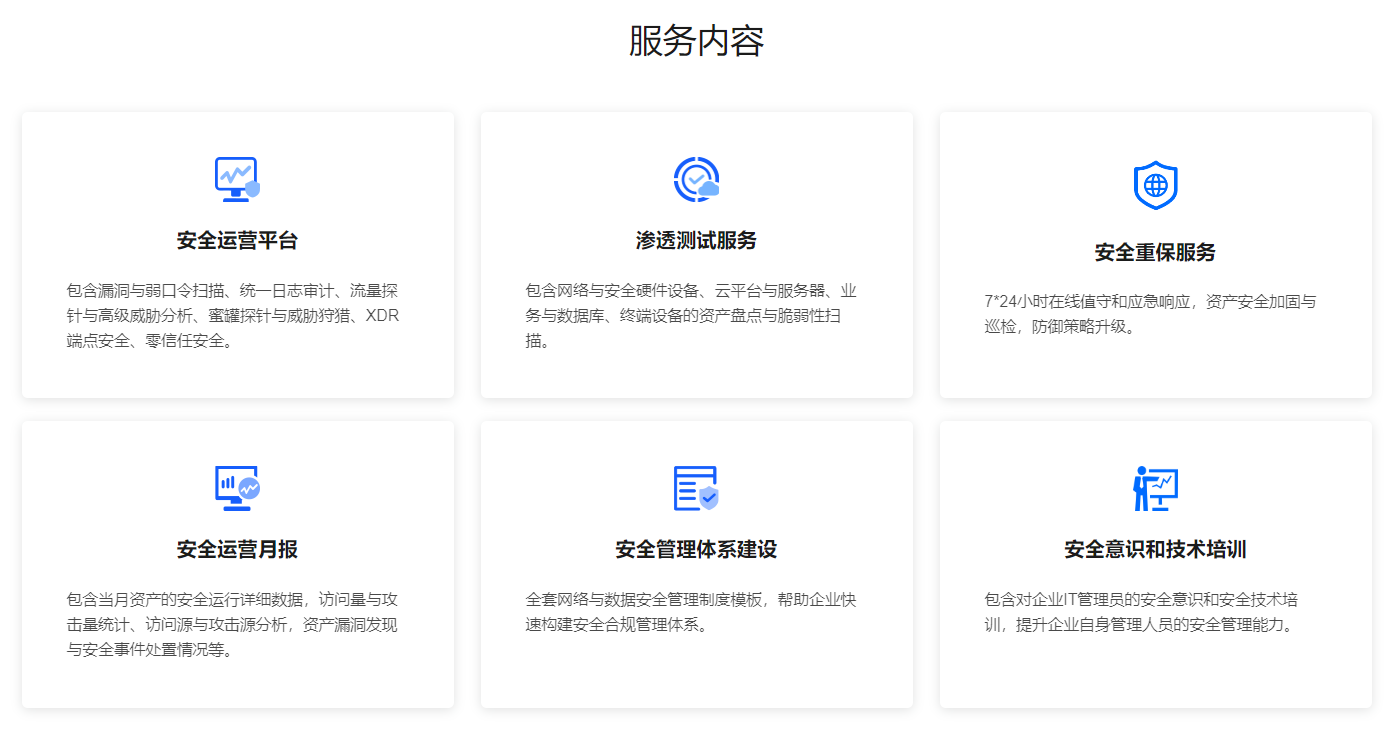 安全托管服务为企业级用户提供的7*24小时网络与信息安全运维服务,同时也能满足用户自主使用安全平台及多云管理灵活自控资产运维能力。