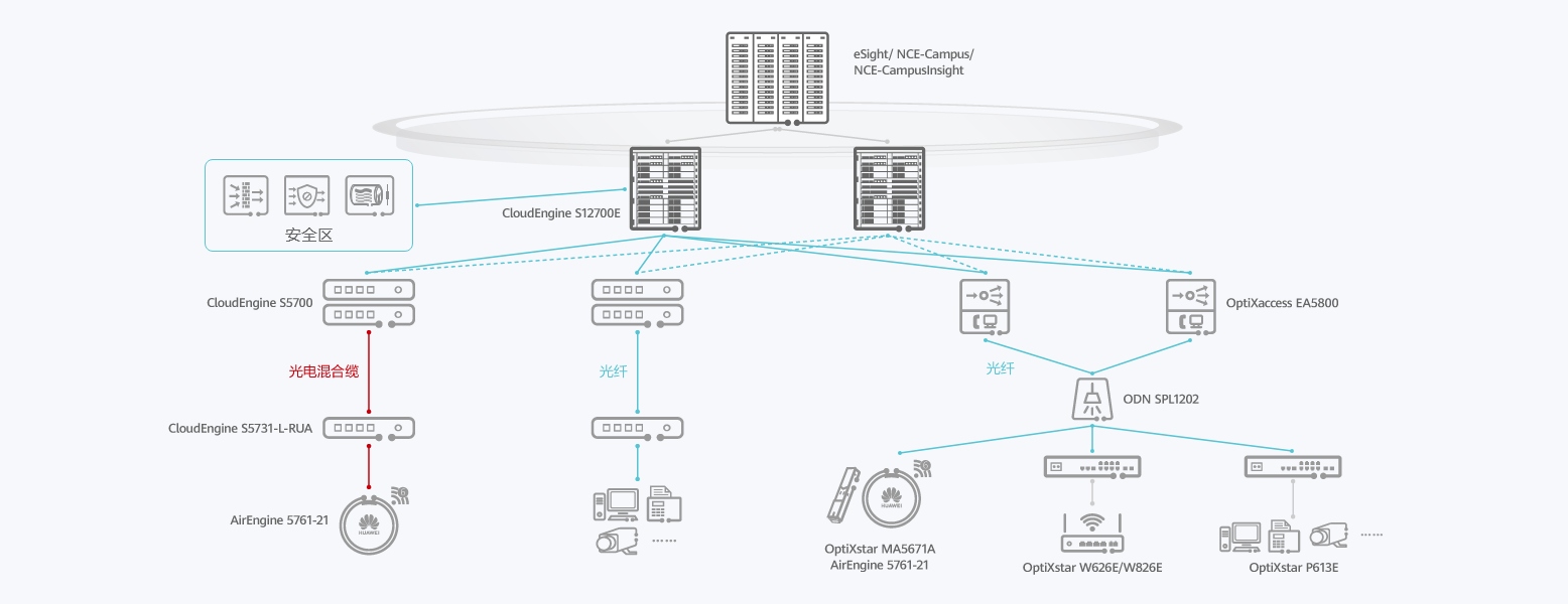 重新定义网络,极简架构满足不同业务场景下灵活多样的组网需求,提供用户高密大带宽、室外长距离等接入诉求,IP及光跨域统一平台管理。