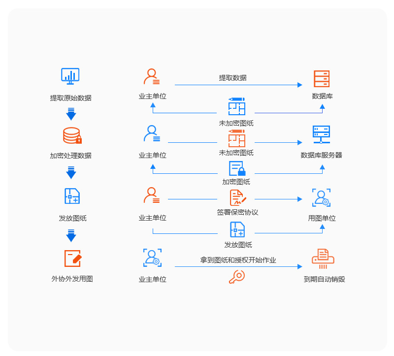 对数据协作单位,加密数据基础上衍生成果数据保持加密状态,时间到期,数据失效。